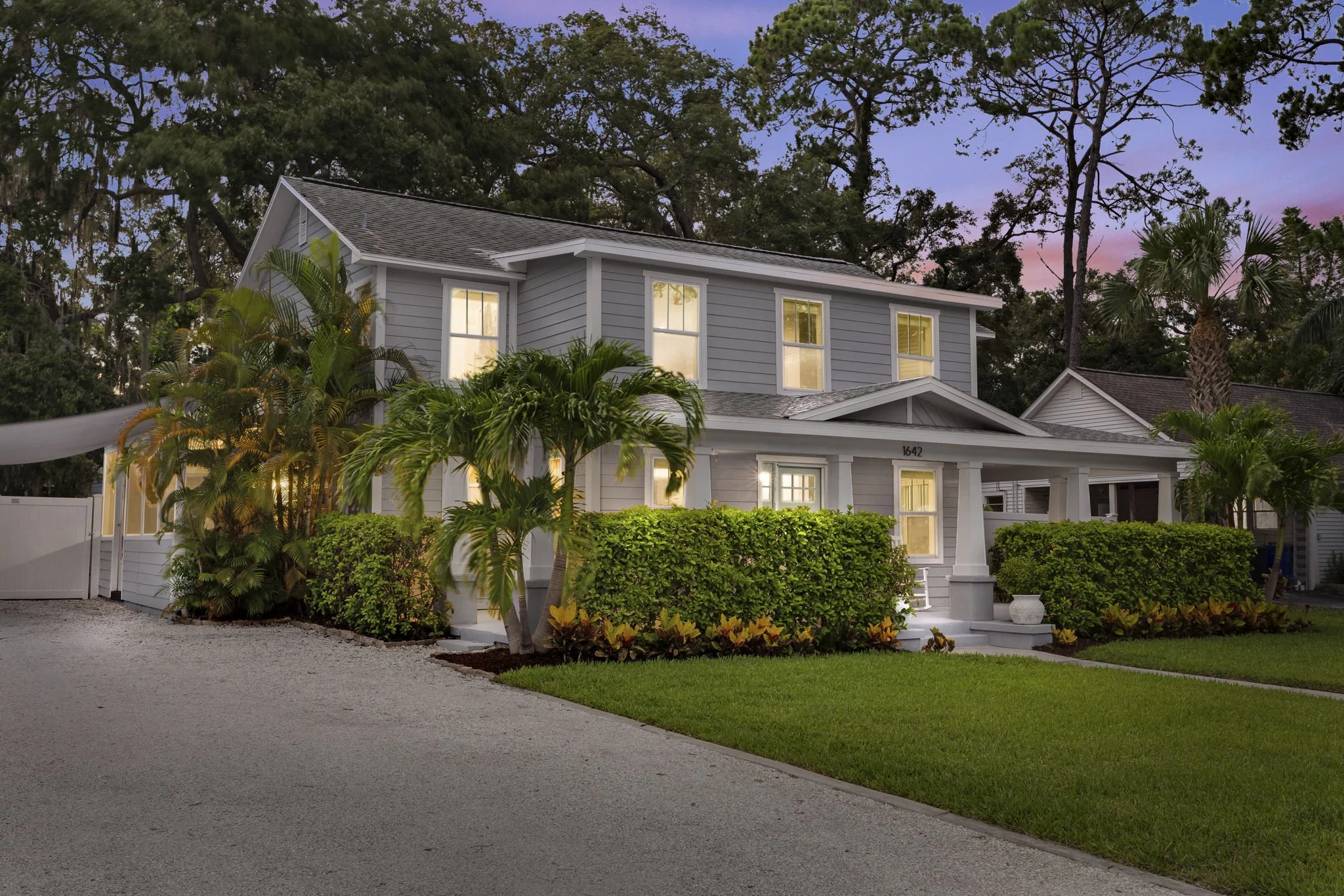 5 Bedrooms, 3 Bathrooms and an elegant wraparound porch exude Southern hospitality and farmhouse charm in this quintessential Craftsman style home. The expansive front porch has been landscaped for privacy and shade. Light blue ceilings create a sense of space while keeping unwanted pests at bay - at least that’s what the folklore says. This two-story home was designed with community at heart. The open layout on the first floor features a spacious living room, dining room and tastefully updated farmhouse kitchen. Wainscoting throughout the house, paired with timeless dark bamboo & wood flooring, a soft palette of whites and blues, and craftsmen details around every corner are sure to delight the senses. The kitchen features quartzite countertops, beautiful cabinetry with tons of storage, a spacious breakfast bar and so much more. The dinette has a Dutch door, both classic and fun, that opens to an enclosed side porch. One full bathroom and one bedroom complete the downstairs area. Heading up the stairs to the second story, you’ll find plenty of room for all! The craftsman details and farmhouse decor carry through. The owners’ suite is impressive - open and airy with ample companion closets, sliding barn door, and a large ensuite. The laundry closet in this bathroom makes finishing chores a breeze. Three additional bedrooms and a full bathroom complete the upstairs. Back downstairs, open the French doors in the dining room to the shaded backyard. Under the canopy of oaks and pines, you’ll find shade sails over the floating deck, vinyl privacy fencing and tons of room for outdoor activities. The large oversized driveway allows for plenty of off street guest parking. This home already checks all the boxes, but there’s more. The location is unbeatable. Hammock Park abuts the edge of the neighborhood, the Pinellas Trail is only 2 blocks away, and downtown Main Street is a quick golf cart ride away. A newly A-rated elementary school is also in the neighborhood. Make your offer today - this warm and inviting home won’t last long.