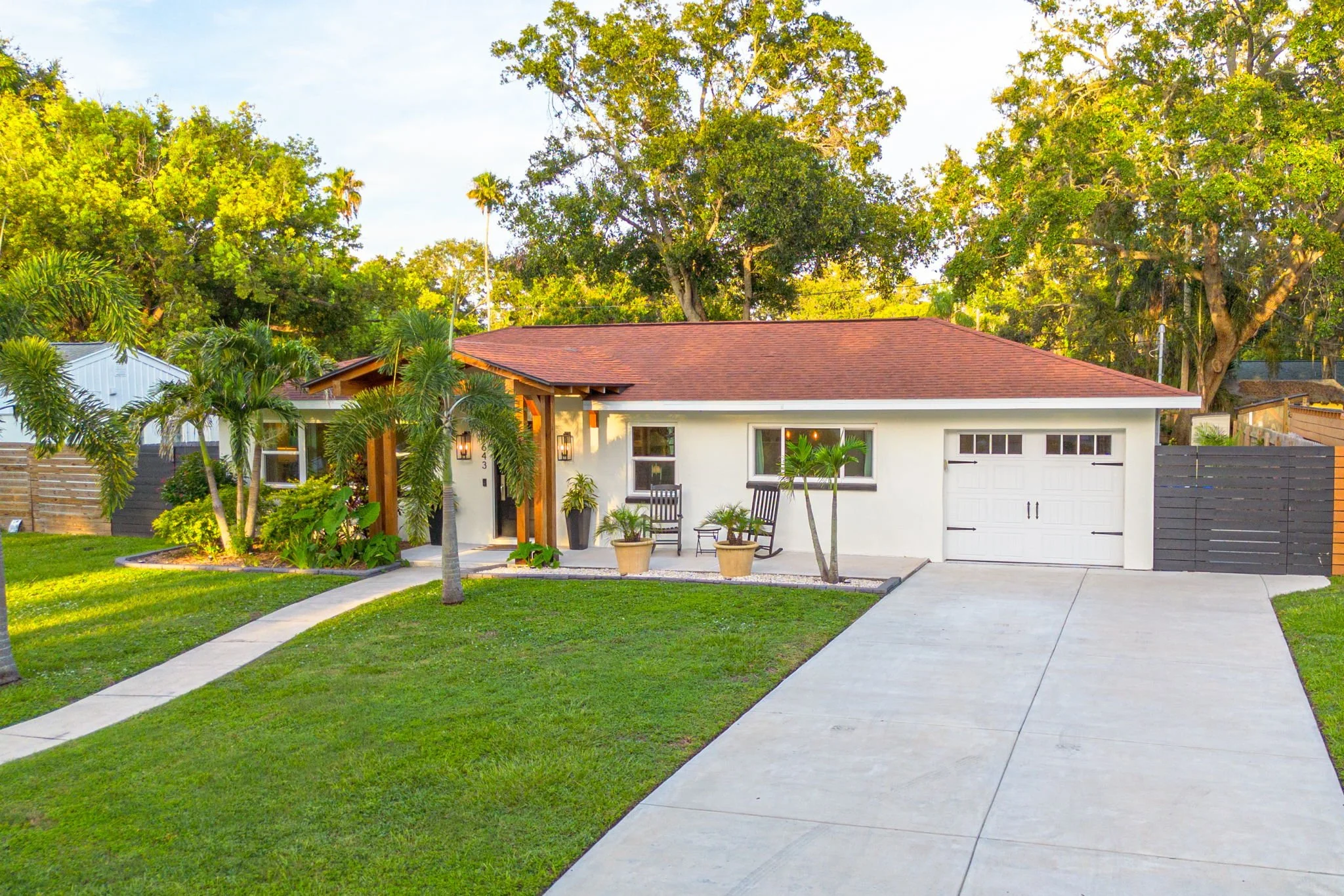 The seller states that this stunning 2-bedroom, 1-bathroom home with a detached in-law studio offers the perfect blend of luxury, comfort, and modern upgrades—just minutes from Downtown Dunedin, top-rated beaches, and serene parks. The exterior has been tastefully updated with lush landscaping and a stunning portico that beckons you inside. Upon entering the home, you will be dazzled by the architectural design, clean lines, open layout, and tranquil ambiance. The sellers spared no expense breathing new life into this home. They replaced the plumbing and sewer lines, updated the electrical wiring, replaced the AC unit and ductwork, and upgraded to impact windows and exterior doors, including the garage. The renovated kitchen features sleek quartz countertops, modern cabinetry, and stainless steel appliances. The home boasts elegant French oak hardwood flooring, solid wood interior doors, and refinished walls and ceilings throughout. The spacious primary bedroom provides a peaceful retreat, featuring French doors that open directly onto the backyard oasis. The second bedroom was extended and includes ample storage with a built-in closet system. The updated bathroom showcases elegant floor-to-ceiling tile and a modern walk-in shower. In the backyard, you’ll find a detached 10’x12’ studio—complete with its own A/C and electrical—offering a flexible space for guests, a home office, or an art studio, all built to current hurricane code. The private backyard sanctuary is thoughtfully designed for both relaxation and entertaining. Unwind by the cozy fire pit, sip your morning coffee or evening drink on the patio deck nestled within a zen garden, or rinse off in the outdoor shower after a day at the beach. The screened-in lanai provides a comfortable, pest-free space to enjoy the Florida lifestyle year-round—perfect for dining al fresco or simply unwinding with a good book. No detail was overlooked; this home is move-in ready and one-of-a-kind in the heart of Dunedin. Review the feature sheet in the attachments for a detailed list of all the upgrades and renovations the sellers have made. Schedule your showing today!