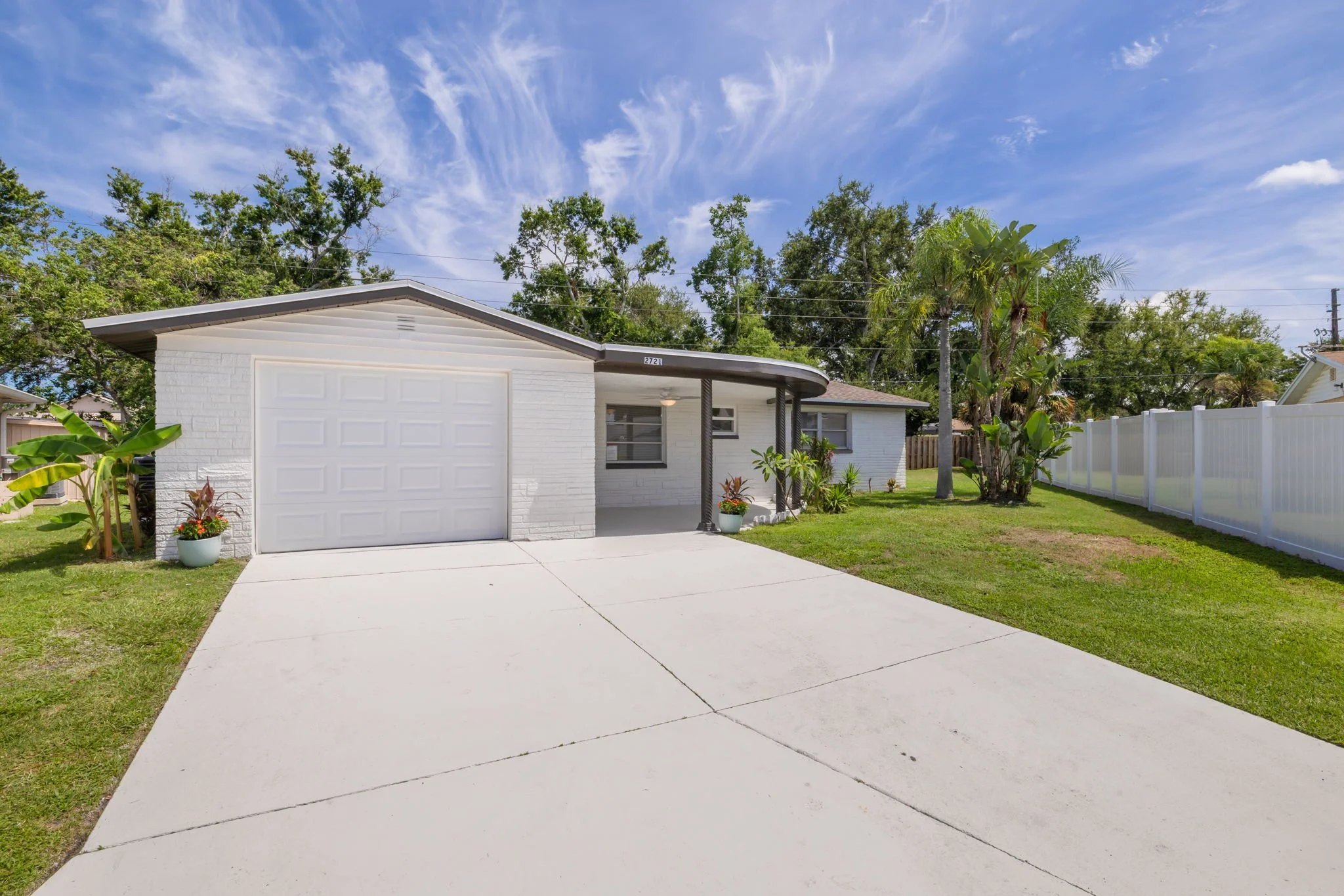 Welcome to this beautifully renovated home in Holiday, where modern updates meet everyday comfort. As you approach the house, you’ll love the covered front porch, perfect for relaxing outdoors. Inside, the spacious living room flows seamlessly into the upgraded kitchen, complete with a breakfast bar, new cabinetry, quartz countertops, marble backsplash, stainless steel appliances, and a dry bar—ideal for entertaining. The dining room offers ample space for hosting guests. The primary bedroom features an ensuite bathroom with a walk-in shower. The two additional bedrooms include built-in closets for plenty of storage. Both bathrooms have been updated with new vanities with quartz countertops. Enjoy luxury vinyl plank flooring throughout, along with a Florida room that's screened and enclosed—a perfect spot to unwind and enjoy the Florida lifestyle. The backyard offers plenty of space for outdoor activities or future enhancements. Additional updates include interior and exterior paint, new HVAC system, new water heater, updated lighting and plumbing fixtures, and underpinning. This home is ready for your personal touch! Schedule your showing today!
